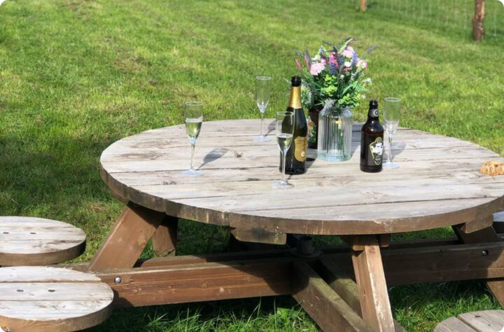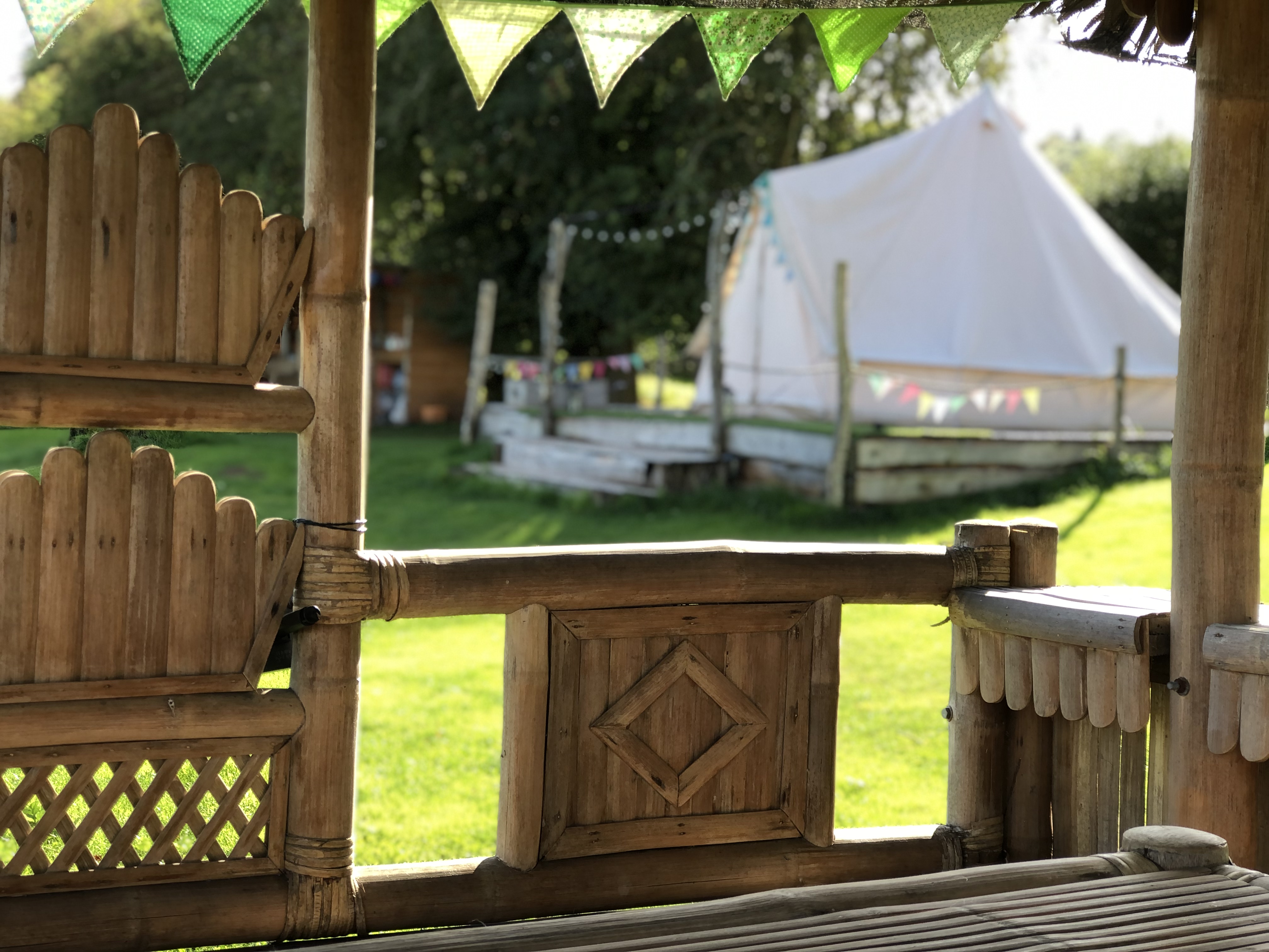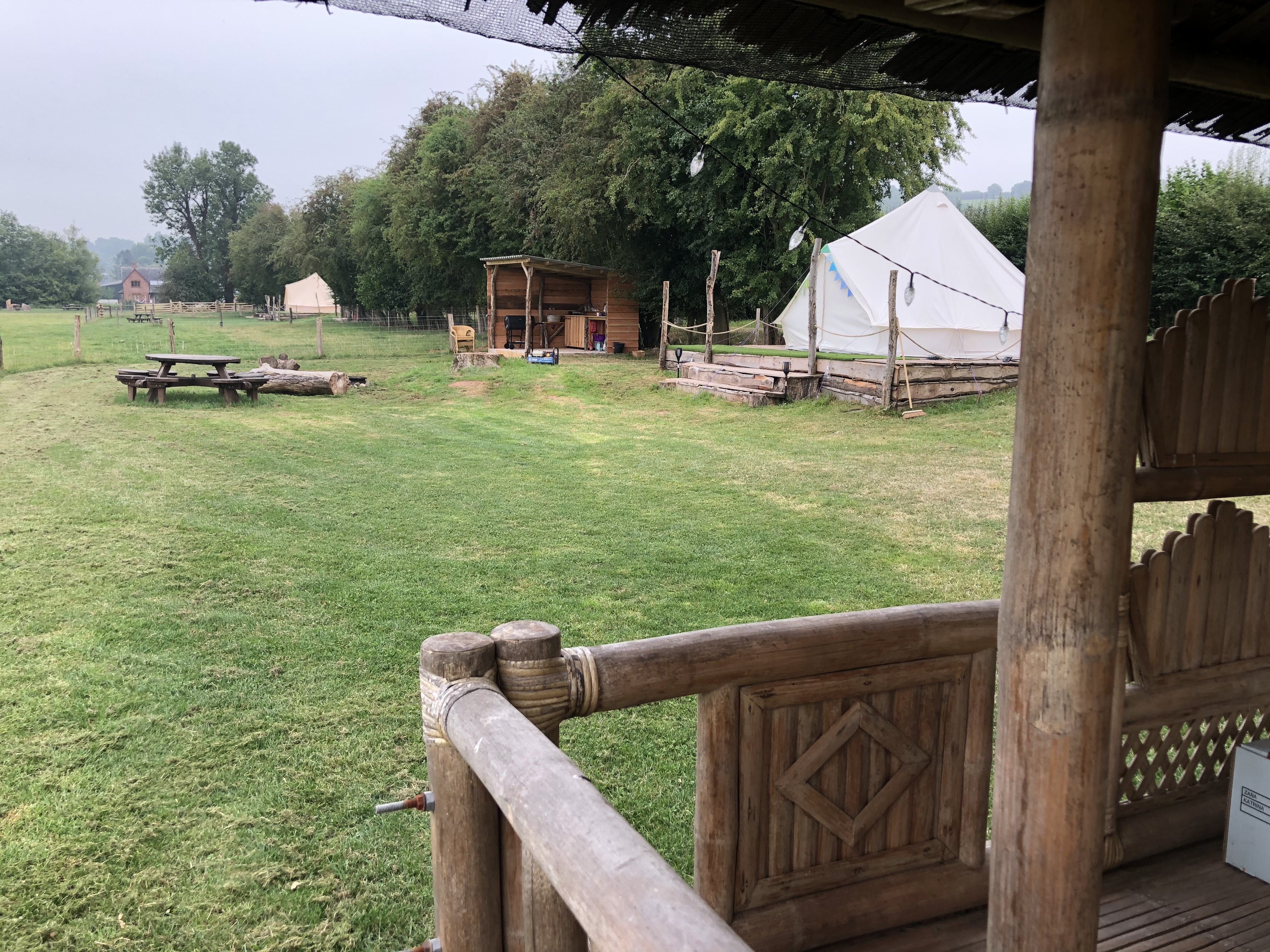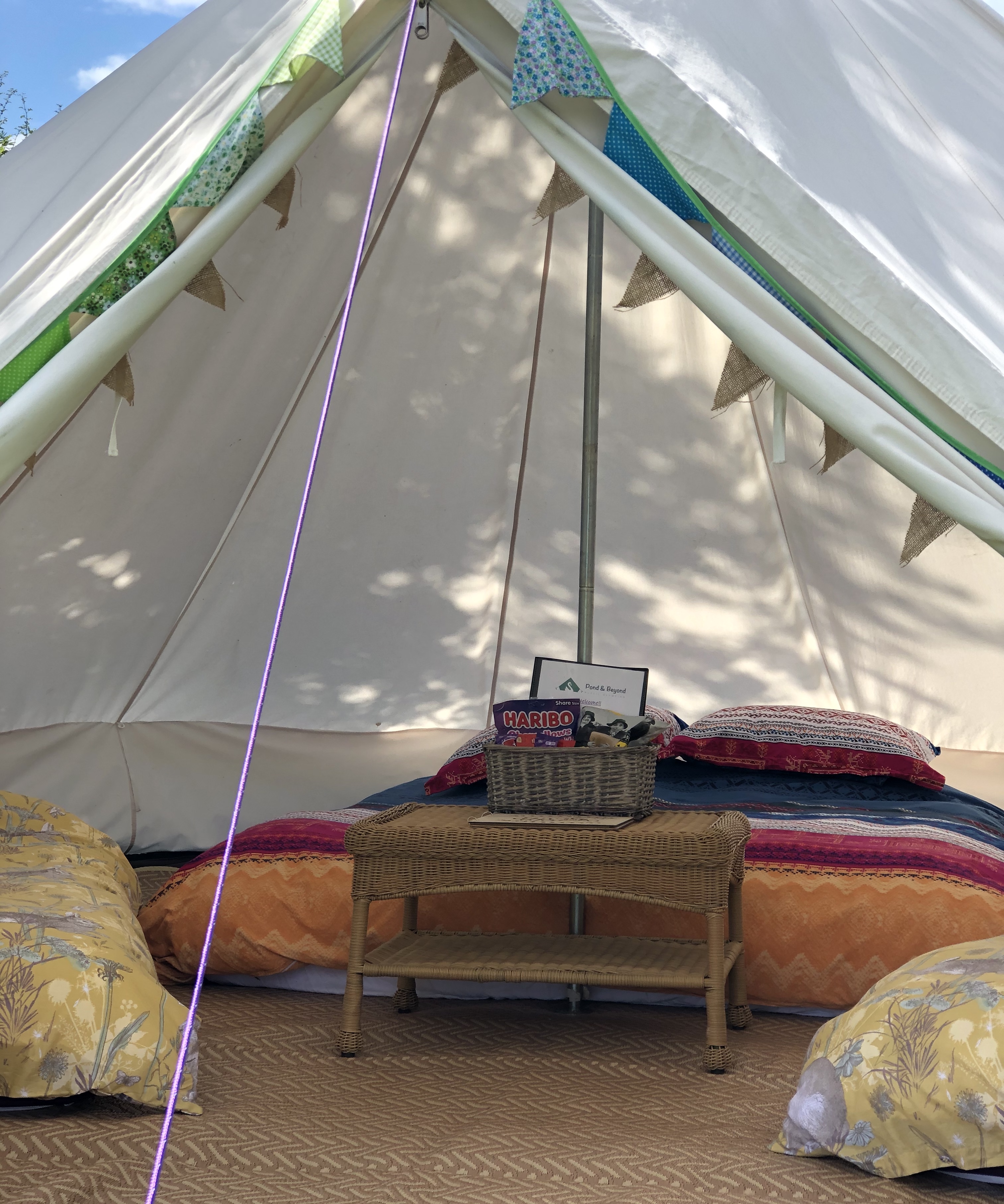 Beyond the pond you will stay in a beautiful bell tent to sleep up to 5 people. You will have your own space to sit around a fire and throw some steak on the barby.